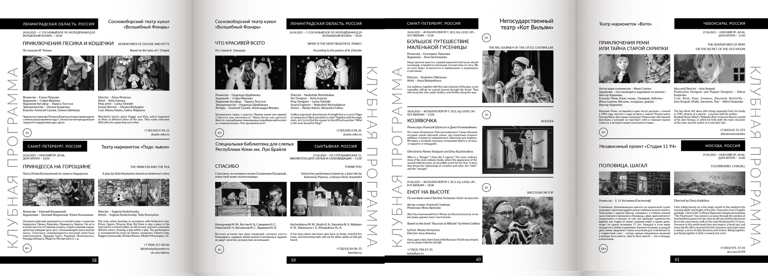 Клубная программа Спектакль «Принцесса на горошине» Режиссер Евгений Кощевский Театр марионеток «Подо львом» (Санкт-Петербург) |